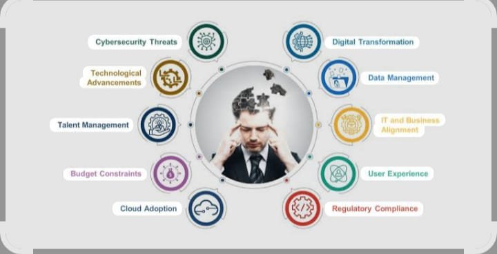 The key challenges in Information Technology (IT) include cybersecurity threats, digital transformation, data management,IT and business alignment, user experience, regulatory compliance ,cloud adoption, budget constraints, talent management and technological advancements.